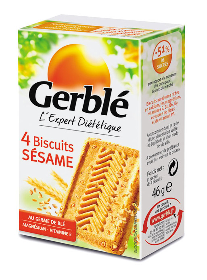 Gerble Biscuits diététiques Sésame - boîte de 4 paquet 18 x 46 grammes