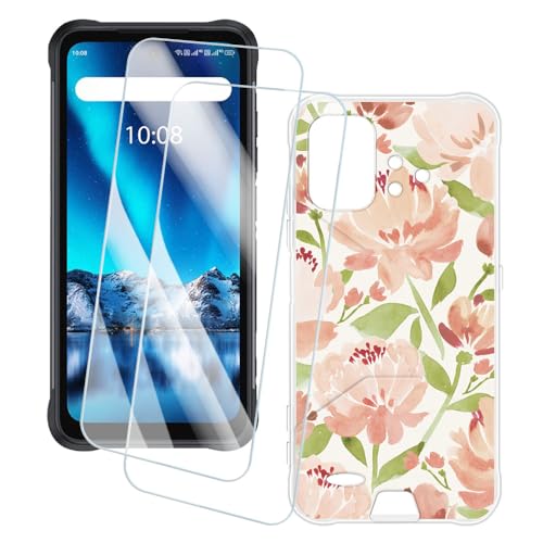 OAGELIM 2 Pack Protège-Écran + Coque Compatible avec Umidigi Bison GT (6.67 Pouce) Coque Impression Artistique Personnalisée et Film Verre Trempé (Fleurs)