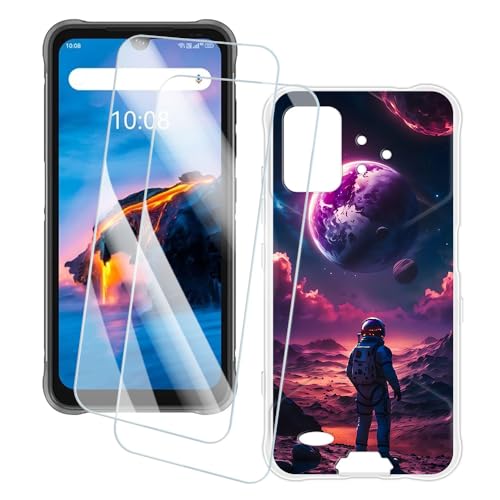 OAGELIM 2 Pack Protège-Écran + Coque Compatible avec Umidigi Bison GT (6.67 Pouce) Coque Impression Artistique Personnalisée et Film Verre Trempé (Astronaute)