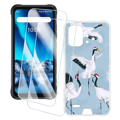 OAGELIM 2 Pack Protège-Écran + Coque Compatible avec Umidigi Bison GT (6.67 Pouce) Coque Impression Artistique Personnalisée et Film Verre Trempé (Grue)