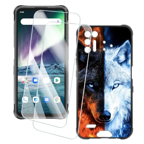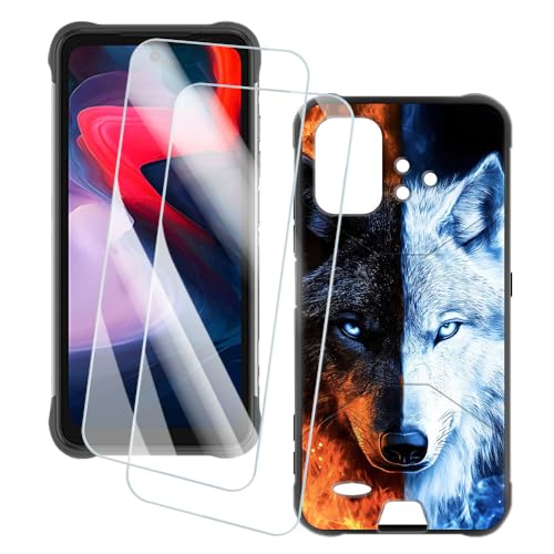 OAGELIM 2 Pack Protège-Écran + Coque Compatible avec Umidigi Bison GT (6.67 Pouce) Coque Impression Artistique Personnalisée et Film Verre Trempé (Loup)