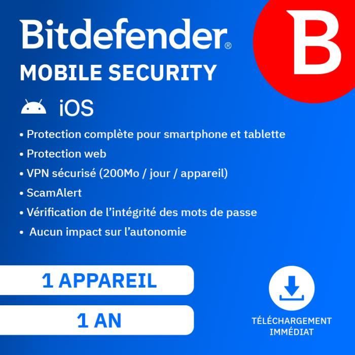 Bitdefender Mobile Security 2026 | 1 Mobile | 1 An | Téléchargement