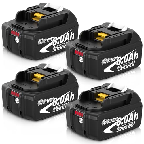 [4 pièces] 8000mAh Remplacement pour Makita Batterie 18V BL1860B BL1860 BL1850B BL1850 BL1840B BL1830B BL1830 194205-3 194204-5 LXT-400 Convient pour Les Outils électriques sans Fil