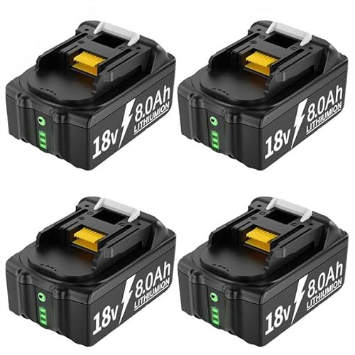 4 x 8Ah Batterie pour BL1860B 18V, Remplacement Batterie pour BL1860 BL1850B BL1850 BL1840 BL1840B BL1830B BL1830 194205-3 avec indicateur de Charge à LED