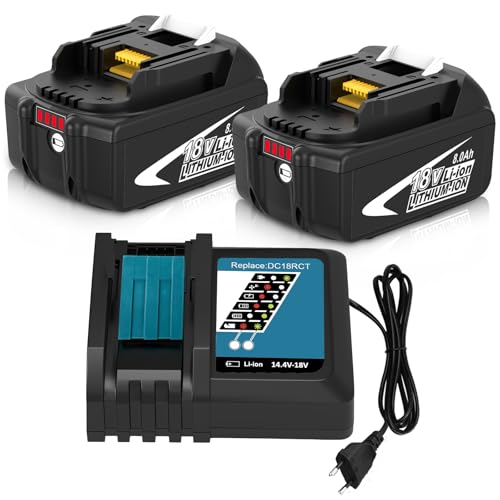 2X 8000mAh Remplacement pour 18V Batterie + Chargeur DC18RC 14.4 V -18V pour BL1860B BL1860 BL1850 BL1840B BL1840 BL1830B BL1830 BL1815 BL1835 BL1845 LXT-400 avec Indicateur LED