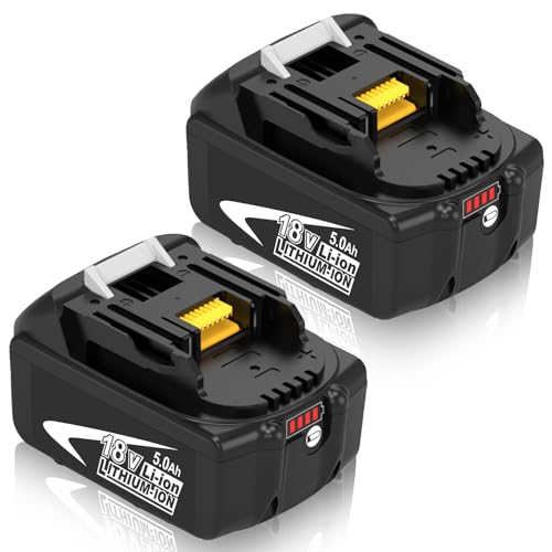 Batterie de Rechange 18V 5.0Ah BL1850B pour Makita 18 Volt LXT avec indicateur de Puissance Batterie pour Outils électriques BL1860B BL1850B BL1850 BL1840B BL1840 BL1830 BL1815B BL1815, 2 pièces