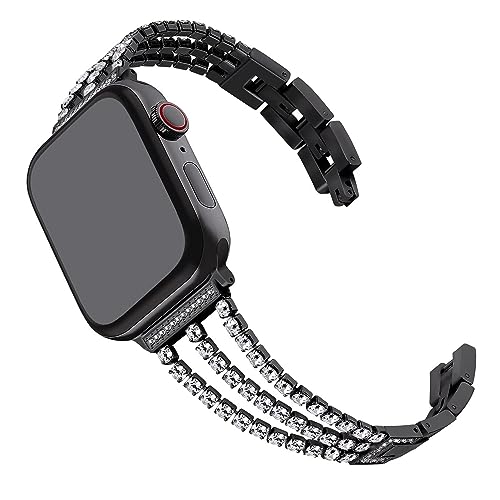 Métal Bracelet Noir Compatible avec Apple Watch 42mm 44mm 45mm 49mm, Paillettes Diamant Bracelet de Rechange Acier Femme Glitter Remplacement Sangle Compatible avec iWatch Ultra 9 8 7 SE 6 5 4 3 2 1