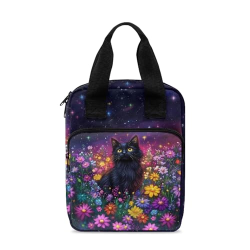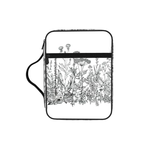 JEJEA Grande housse de bible pour femme avec poche zippée et poignée Motif fleurs noires et blanches