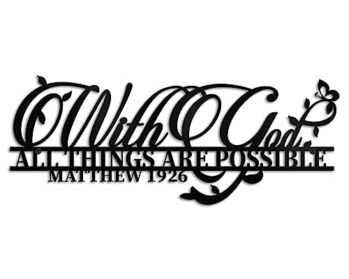 Vivegate Décoration murale en métal avec inscription « With God All Things Are Possible » - 45,7 x 30,5 cm - Inscription religieuse - Versets de la Bible chrétienne noire - Everthing Is Possible with