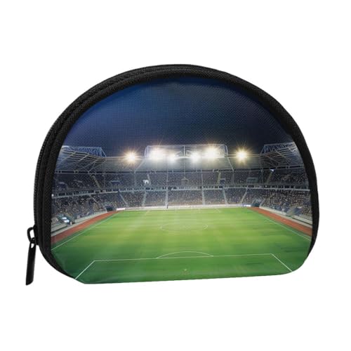 Joli porte-monnaie et mini pochette à changer, stade de football Satdium Field Light Night Printed Petit sac d'argent tendance à fermeture éclair pour femme, noir, taille unique, demi-cercle, Noir