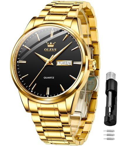 OLEVS Hommes Montre en Doré en Or Analogique Quartz Mode Casual Business Dress Montre - Bracelet Date Night Light ImperméAble Cadran Noir