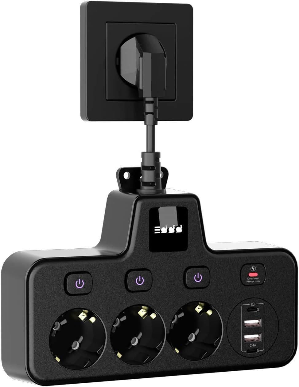 Power Strip With 4 Usb, 2 Power Sockets With Individual Switch And Led Night Light, 2 Usb A Ports + 2 Usb C Ports, 3250 W 13 A For Home, Office - Black