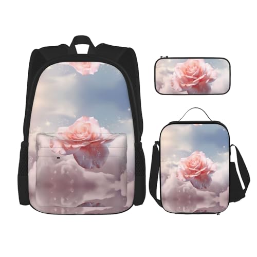 WZYCWB Magic Rose Campus Life Ensemble sac à dos (3 pièces) – Cartable + trousse à crayons + sac à déjeuner pour répondre à tous les besoins quotidiens des étudiants !, noir, taille unique, Noir