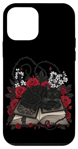 Chat Noir endormi sur sorcières Grimoire avec des épines de Roses Coque pour iPhone 12 Pro Max