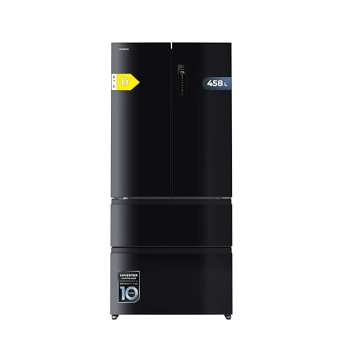 Cecotec Réfrigérateur Américain 4 Portes Bolero CoolMarket 4D 601 Black Glass E. 601L, Moteur Inverter, 90cm, No Frost, ECO, Refroidissement Rapide, Display, Alarme Température, Verre Noir