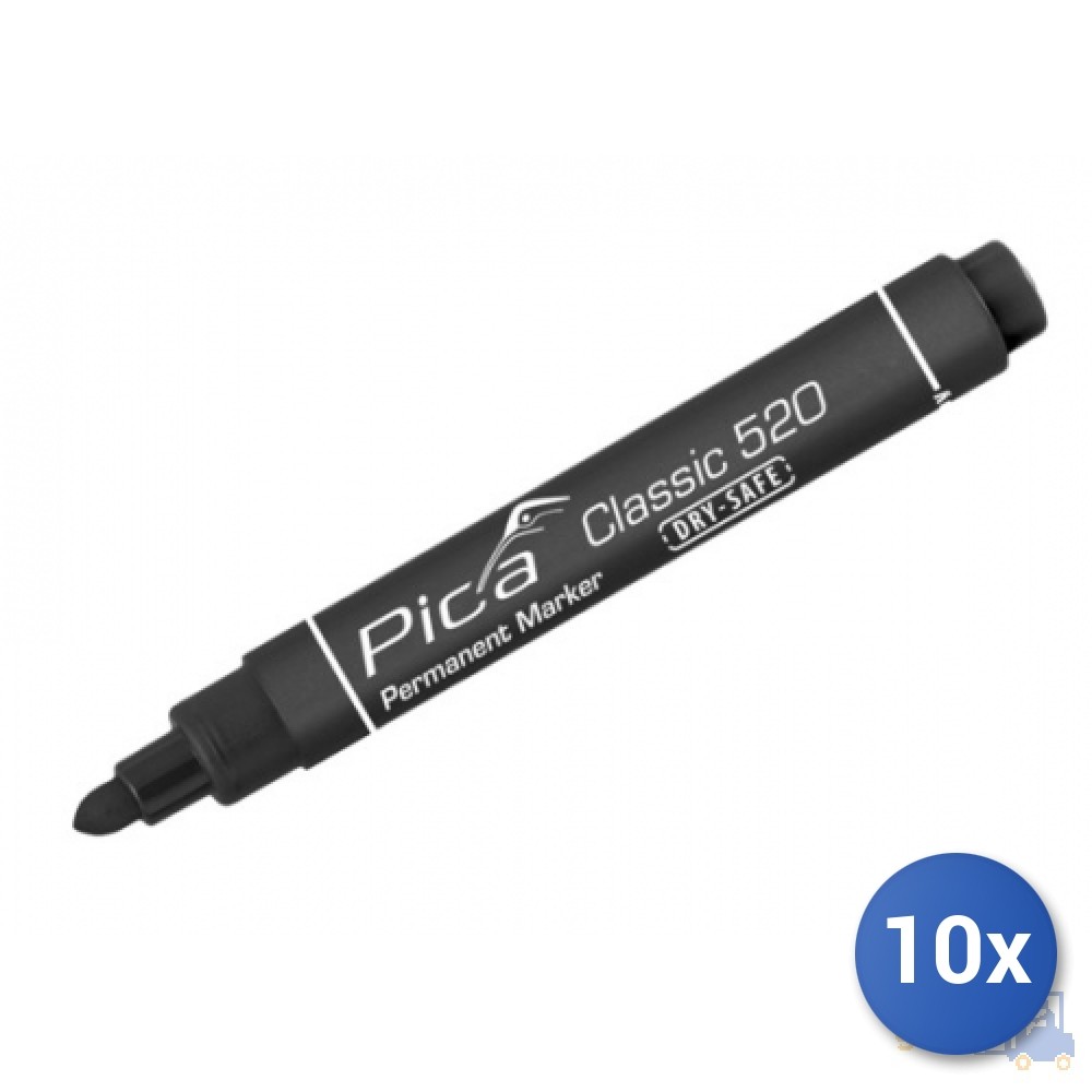 10x Pica Market Marqueur Permanent À Pointe Ronde Classic 520 PICA NOIR