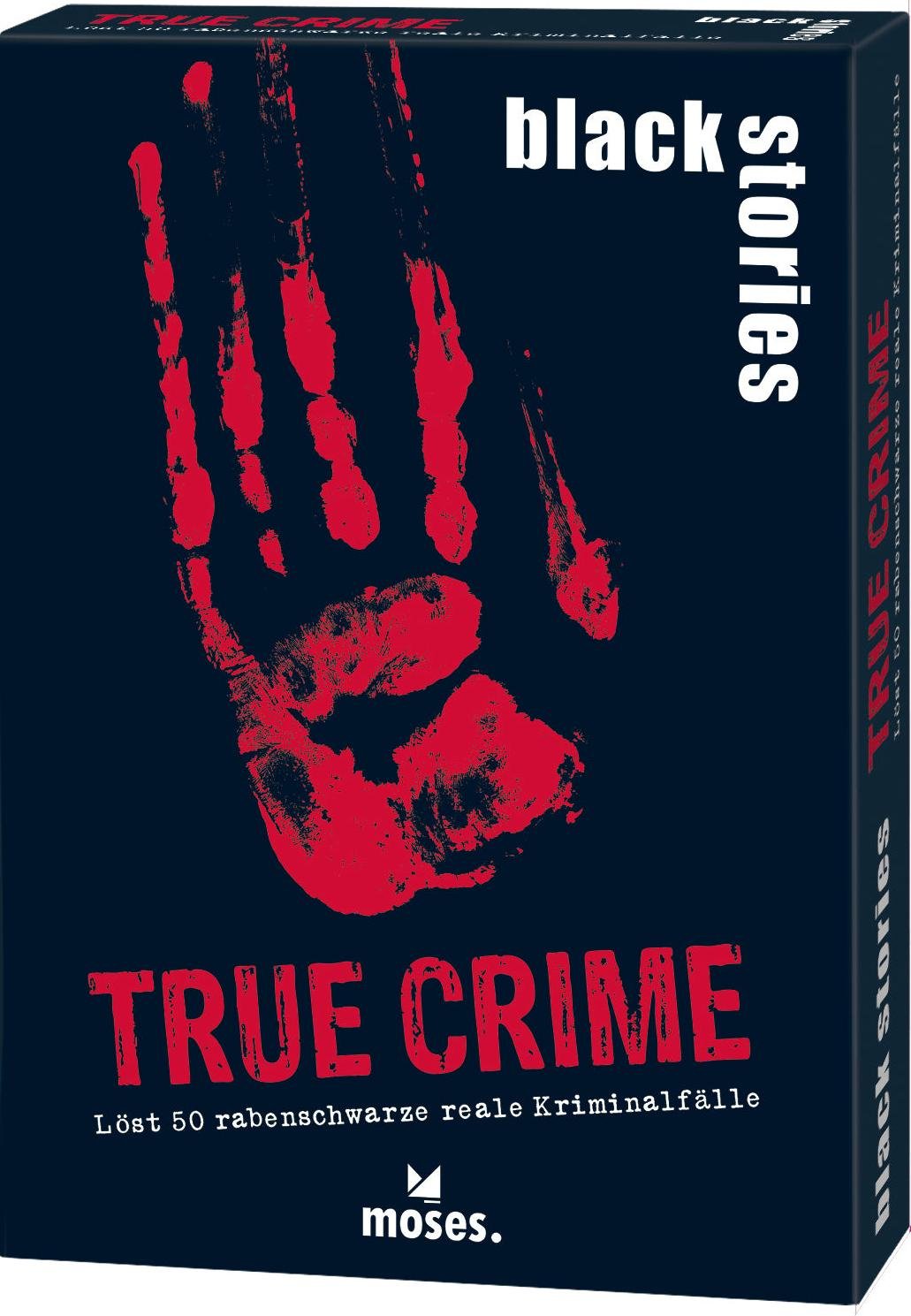moses Black Stories 90049 Black Stories True Crime-50 Puzzles autour des affaires criminelles réelles Jeu de cartes avec variante de jeu et jetons de points, jeu de puzzle pour adolescents et adultes,