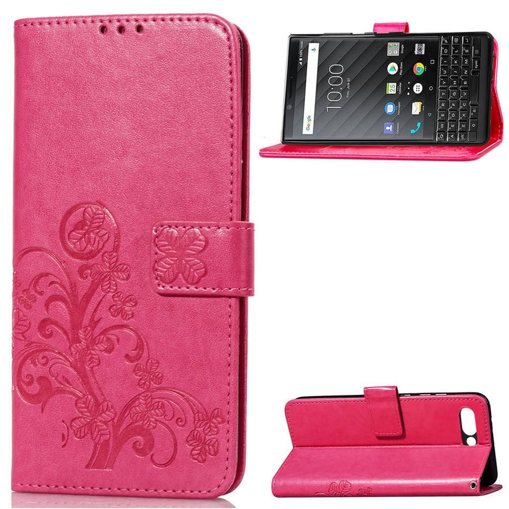 Blackberry Keytwo Coque, Saturcase Lucky Clover Pu Cuir Magnétique Flip Portefeuille Support Porte-Carte Protecteur Cover Case Avec Dragonne Coque Housse Étui Pour Blackberry Keytwo / Key2 / Athena (Rose)