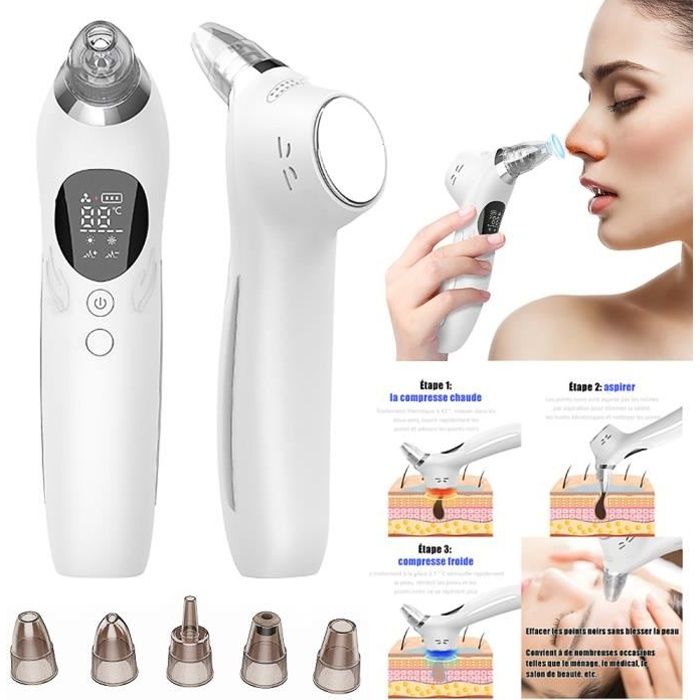 Blackhead Remover Aspirateur sous vide Acné Pore Cleaner LCD électronique 6 ventouses