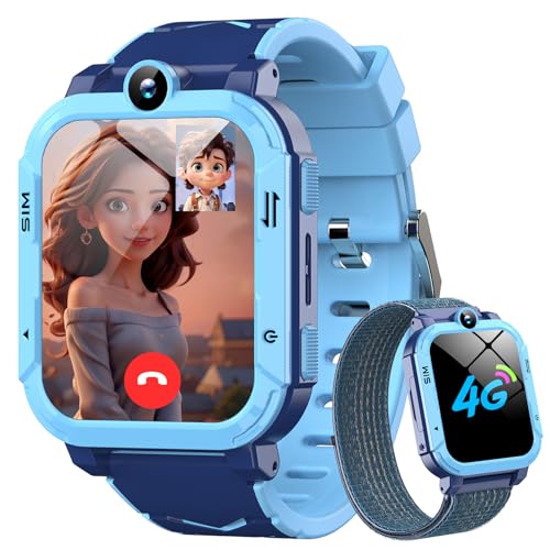 Blackview Montre Connectée Fille Garçon à 4G, GPS+LBS+WiFi, SOS, Caméra Frontale, Appels Vidéo, Podomètre, pour Filles et Garçon 5-16 Ans(Bleu)