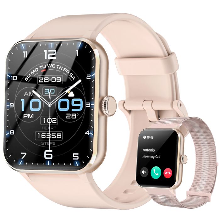 Blackview Montre Connectée Femme avec Appel Bluetooth 1.85 HD Smartwatch 3 Bracelets/100+ Sportif/Calories/ SpO2/Podometre/IP68