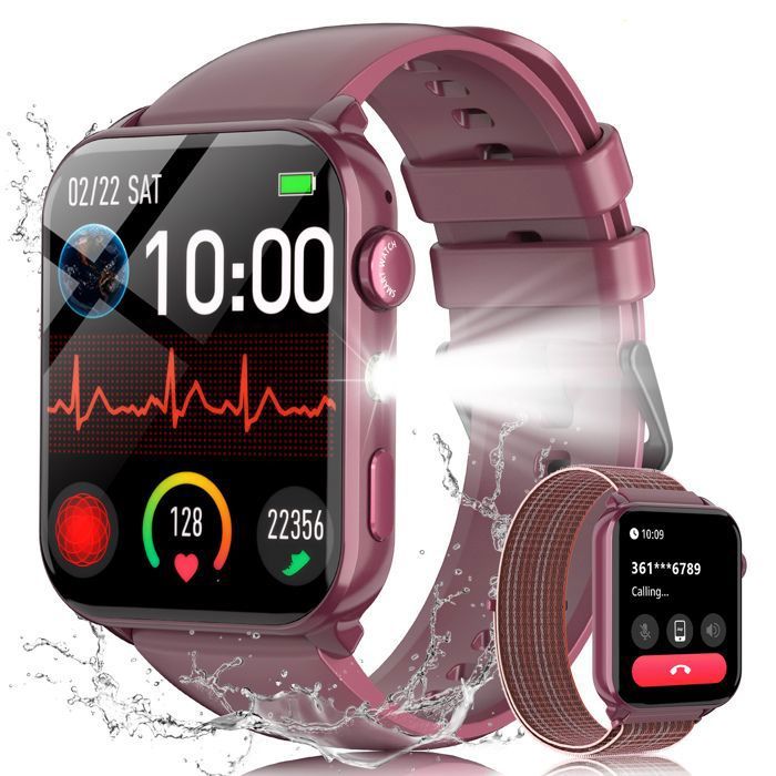 Blackview Montre Connectée Femme Homme, Torche Intégrée, Appel Bluetooth Podomètre Cardiofréquencemètre Oxymètre, Étanchéité IP68, Cycle Menstruel, Analyse du Sommeil, pour Android et iOS (Rose)