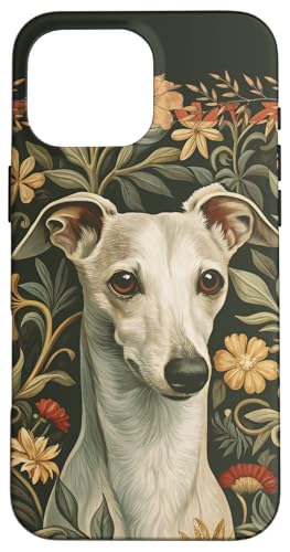 Lévrier Italien Blanc Style William Morris Coque pour iPhone 16 Pro Max