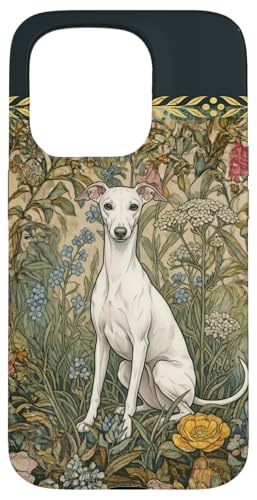 Lévrier Italien Blanc Style William Morris Coque pour iPhone 15 Pro