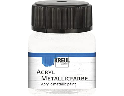 KREUL 77279 - Peinture Acrylique Métallique, 20 ml verre en blanc nacré, peinture acrylique glamour à effet métallique à base d'eau, couvrant comme une crème, séchage rapide et résistant à l'eau