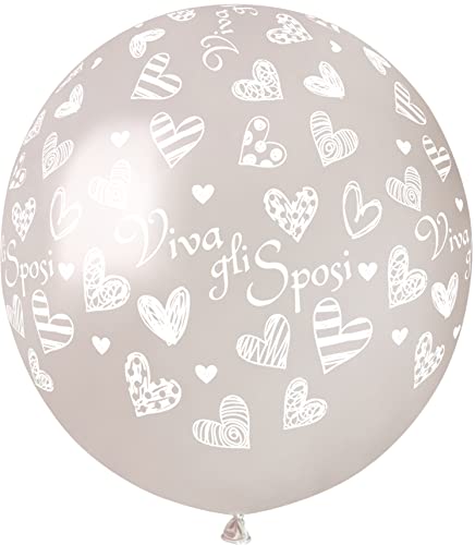 Ciao - Enveloppe 25 ballons de mariage "Viva I Sposi" en latex naturel Premium Quality G150 (Ø 48 cm / 19"), blanc nacré