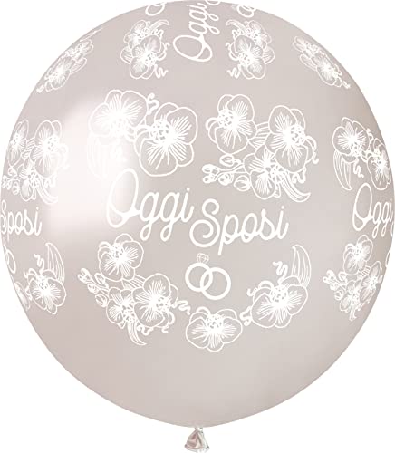 Ciao - Enveloppe 25 ballons de mariage « Oggi Sposi" en latex naturel Premium Quality G150 (Ø 48 cm / 19"), blanc nacré