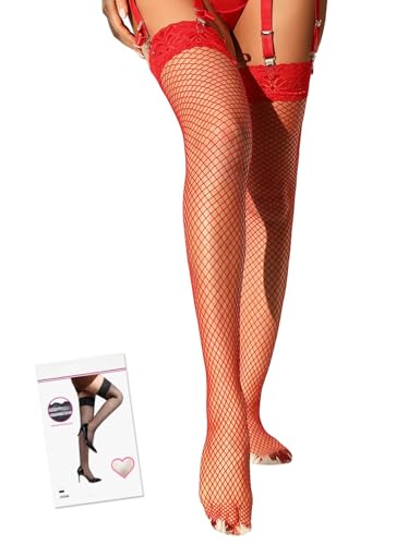 comeondear Résille Bas pour Porte-Jarretelles Sexy Femme Bas Autofixants Femme Grande Taille Dentelle Lingerie Chaussettes Noir Blanc en Boîte(Rouge,XS-M)