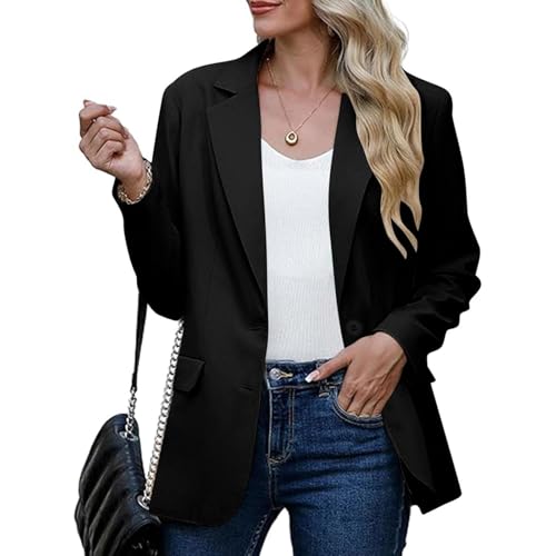 Dasongff Blazer Femme Business Slim Fit Veste de Costume Élégant Manches Longues Femmes Couleur Unie Courte Un Bouton Cardigan Bureau Affaires OL Veste de Tailleur de Soiree Automne avec Poche