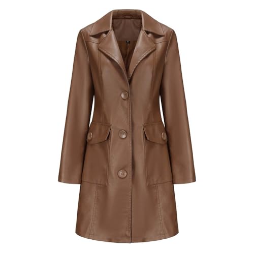 Blazer Femme Noir - Manteau Britannique À La Mode pour Femmes Manteau en Cuir À Boutonnage (Black M)