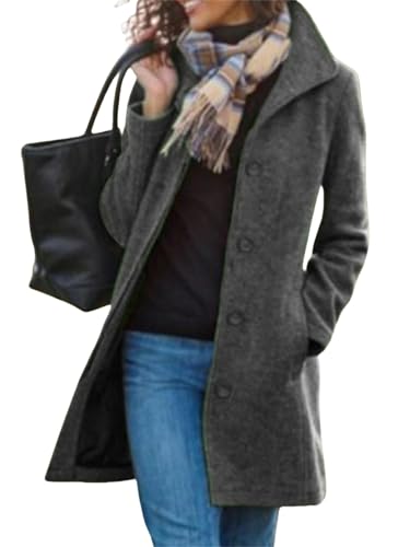 Long caban pour femme, manteau d'hiver en laine mélangée, col montant, boutonnage simple, veste blazer épaisse (gris, taille 2XL)