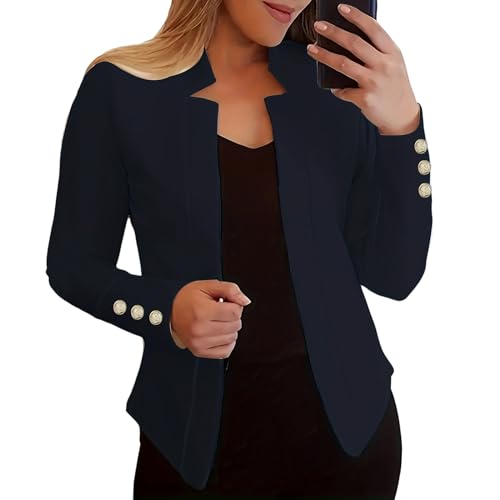 Blazer Femme Noir - Veste Longue sans Manches pour Femmes Trench-Coat Décontracté À Revers (Black M)