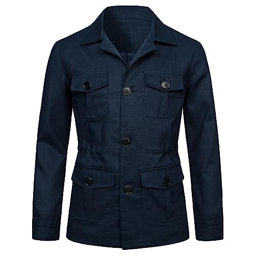 Générique Veste Blazer Homme,Costumes DéContractéS en Lin Et Coton Vestes Manteaux De Sport LéGers (Navy, 3XL)