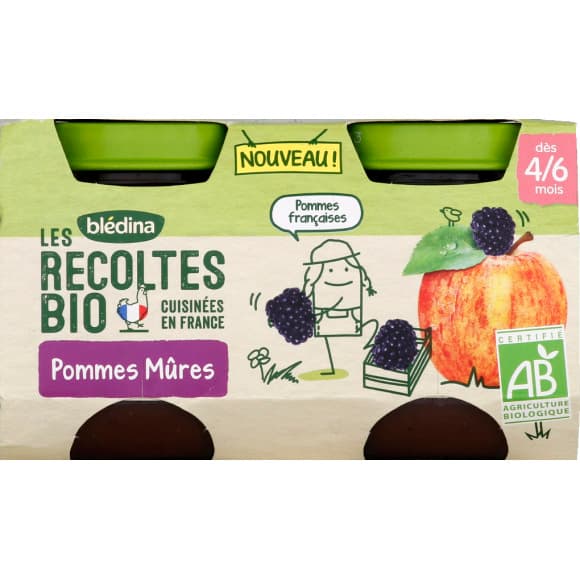 Bledina les recoltes bio pots pommes mûres 2x130g dès 4/6 mois
