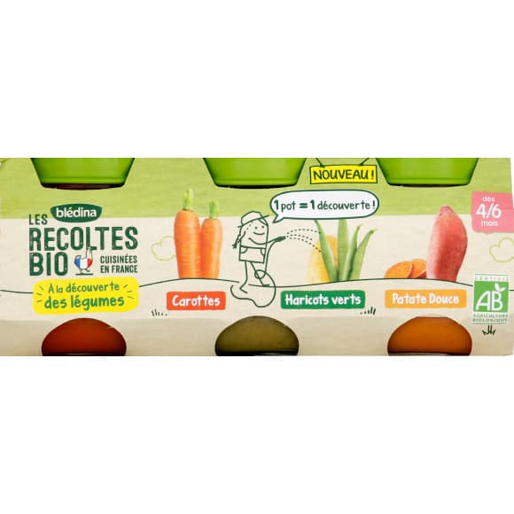 Bledina les recoltes bio pots carottes / haricots vert / patate douce 3x130g dÈs 4/6 mois