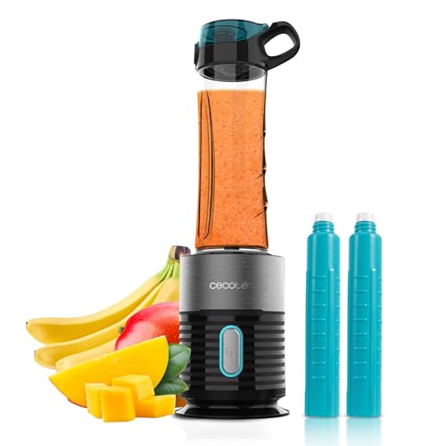 Cecotec Blender Portable Individuel Smoothies Power Titanium 900 ProGo, Puissance Max de 900W, Comprend 2 Tasses Portables de 570 ml, 4 Lame Détachables avec Revêtement en Titane Noir