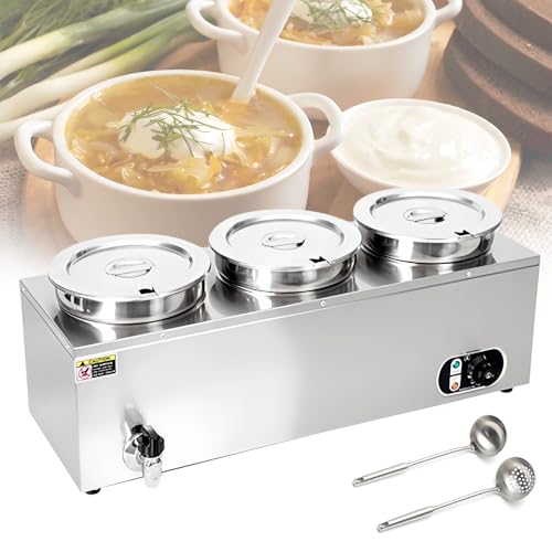QUSYZD Bain-Marie Chauffant pour soupes et sauces - Bac à Soupe/sauces en Acier Inoxydable avec couvercles et contrôle de température, idéal pour la Restauration et Les TR,7l X 3-220V