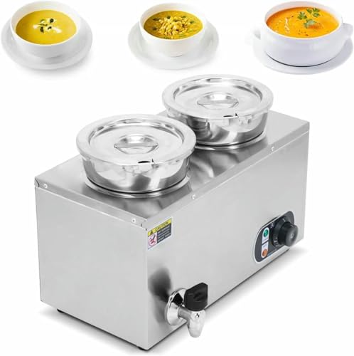 QUSYZD Bain-Marie Chauffant pour soupes et sauces - Bac à Soupe/sauces en Acier Inoxydable avec couvercles et contrôle de température, idéal pour la Restauration et Les TR,7l X 2-110V