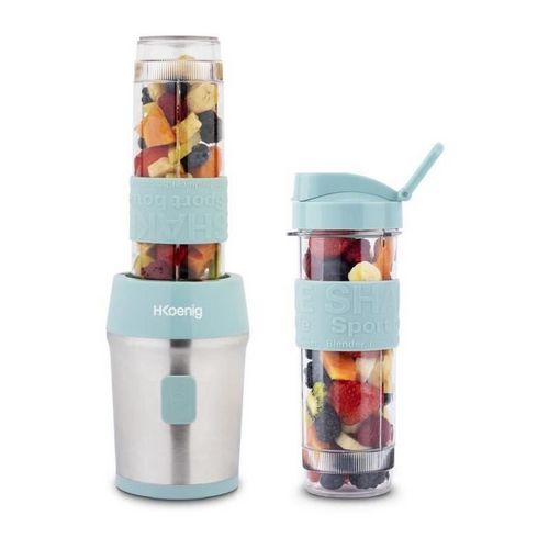Mini blender - H.KOENIG - SMOO16 - 300 W - 570 mL - Bleu pastel - 2 gourdes incluses - Sans BPA