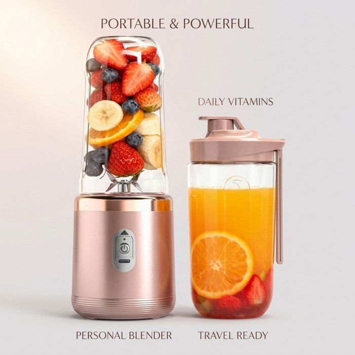 Presse-Agrume électrique Blender Portable - 123 - Mini Juicer Cup 330ML - Rose - USB Charge Manuelle