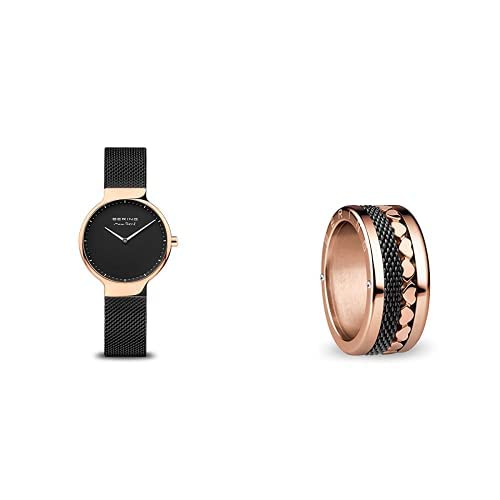 BERING Femmes Analogique Quartz Max René Collection Montre avec Bracelet en Acier Inoxydable & Verre Saphir 15531-262 + Combinaison de Bagues