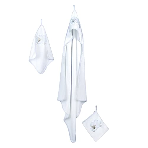roba Coffret Sortie de Bain Bébé Kleine Wolke bleu : Cape de Bain + Serviette et Gant de Toilette - Brodé Nuage