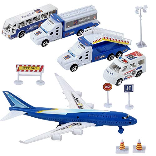 TURBO CHALLENGE - Coffret Aéroport 11 pièces - City - 097728 - Véhicule Roues Libres - Bleu - Plastique - À Partir de 3 Ans
