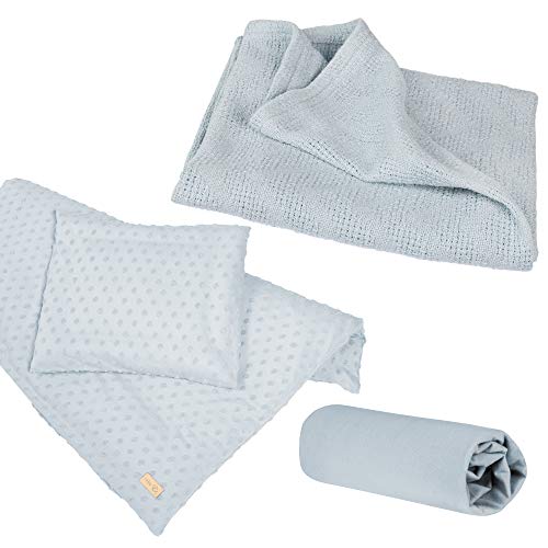 roba Coffret Cadeau Bébé Lil Planet 4 pcs : 1 Housse de Couette + 1 Taie Oreiller + Drap Housse + Couverture - Certifié GOTS et OEKO-TEX - Bleu Clair