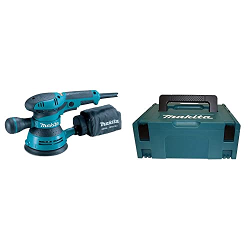 Makita BO5041 Ponceuse excentrique 300 W Ø 125 mm Bleu & COFFRET MAKITA DE TRANSPORT MAKPAC2 395x295x157 MM (coffret nu) - 821550-0