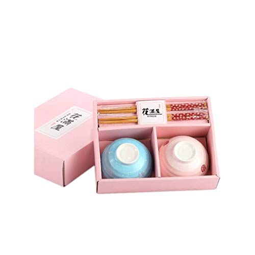 lachineuse - Coffret 2 Bols Japonais Rose & Bleu ⌀ 11cm - Bols à Riz, Poke Bowl, Apéritif, Petit Déjeuner & Soupe - 2 Paires de Baguettes - Bol Asiatique Japon Asie - Cadeau Vaisselle Japonaise